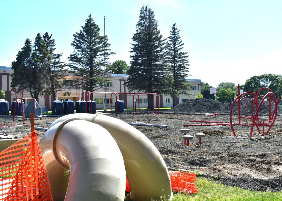 ABOVE: The Fairmont Area School District is working on several projects, including installing a new playground at the elementary school. Some of the old equipment can be seen in the foreground while some new pieces have already been installed.