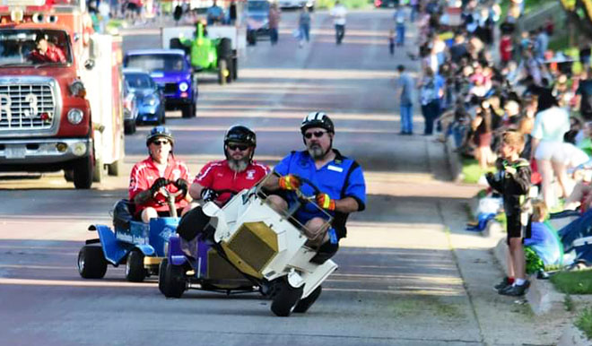 ABOVE: Kart drivers perform tricks and spins at last year’s Interlaken Heritage Days Parade. The route of the Interlaken Heritage Days parade conventionally travels from Heritage Acres, past Downtown Plaza and toward Lincoln Park. The parade showcases clubs, teams, churches, musicians, and several other organizations, attracting the attention of families. Submitted photo.