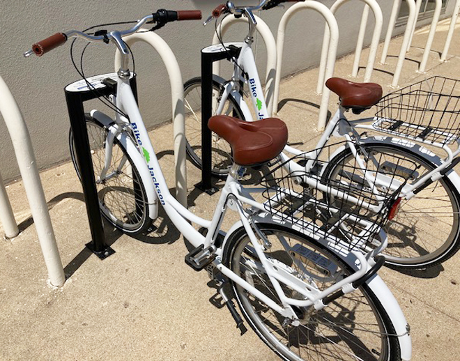 ABOVE: Some bikes that the community of Jackson has available through On Bike Share. The Kids Just Want to Have Fun committee is looking into implementing the bike share program in Fairmont as well.