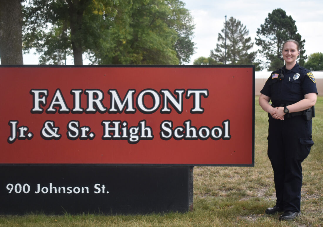 FAIRMONT– Officer Lily Paine of the Fairmont Police Department is the new School Resource Officer (SRO) for the Fairmont Area School District. She takes over for former SRO, Shannon Bass, who retired from the department earlier this summer.