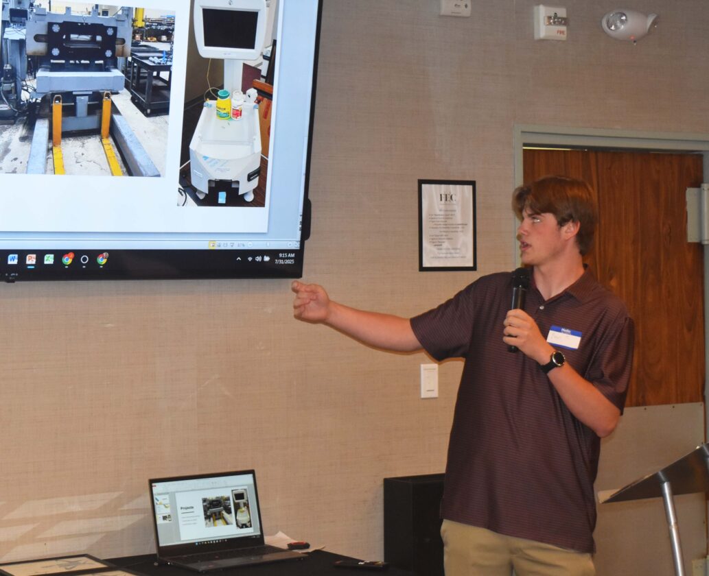 ABOVE: Benjamin Moeller discusses his internship at Weigh-Tronix during the Intern Recognition event on Thursday at Best Western in Fairmont.