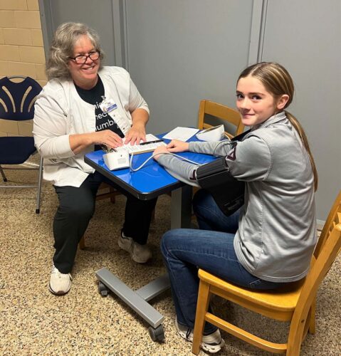 ABOVE: Martin County West student Allison Clarke gets her blood pressure taken at the high school in Sherburn on Oct. 27. The event was sponsored by the Karson Kent Janssen Memorial. Submitted photo.