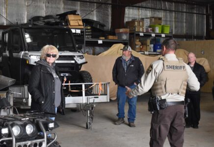 ABOVE: Deputy Clinton Cole of the Martin County Sheriff’s Office speaks to Commissioners Billeye Rabbe and Richard Koons, and County Engineer Kevin Peyman (all pictured), while giving a tour of the county impound building to the board of commissioners and some other county staff on Friday morning in Fairmont. This building was one of 10 county buildings the group toured on Friday.