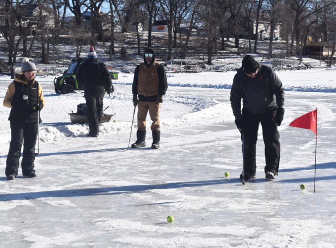 FAIRMONT– This past weekend one of Fairmont’s frozen lakes was used not for ice skating or fishing, but for golfing as a group of friends and neighbors took part in an annual snow golf event on George Lake.