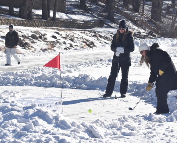 Snow golf played on Fairmont’s frozen lake