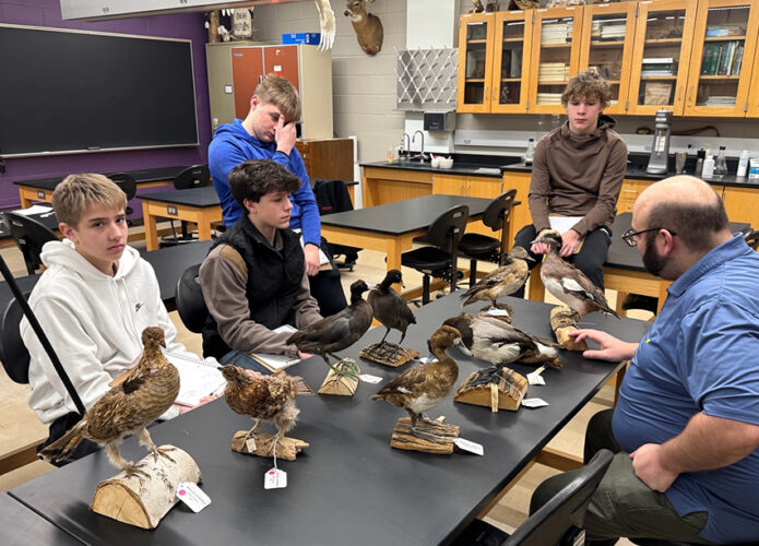ABOVE: The MCW Fish & Wildlife team. From left: Tanner Anderson, Brock Jagodzinske, Gavin Schoen and Kane Wohlhuter (Eli Meixell not pictured) at Minnesota State University in Mankato where they worked with a professor on specimen identification, as part of a career development event. Submitted Photo