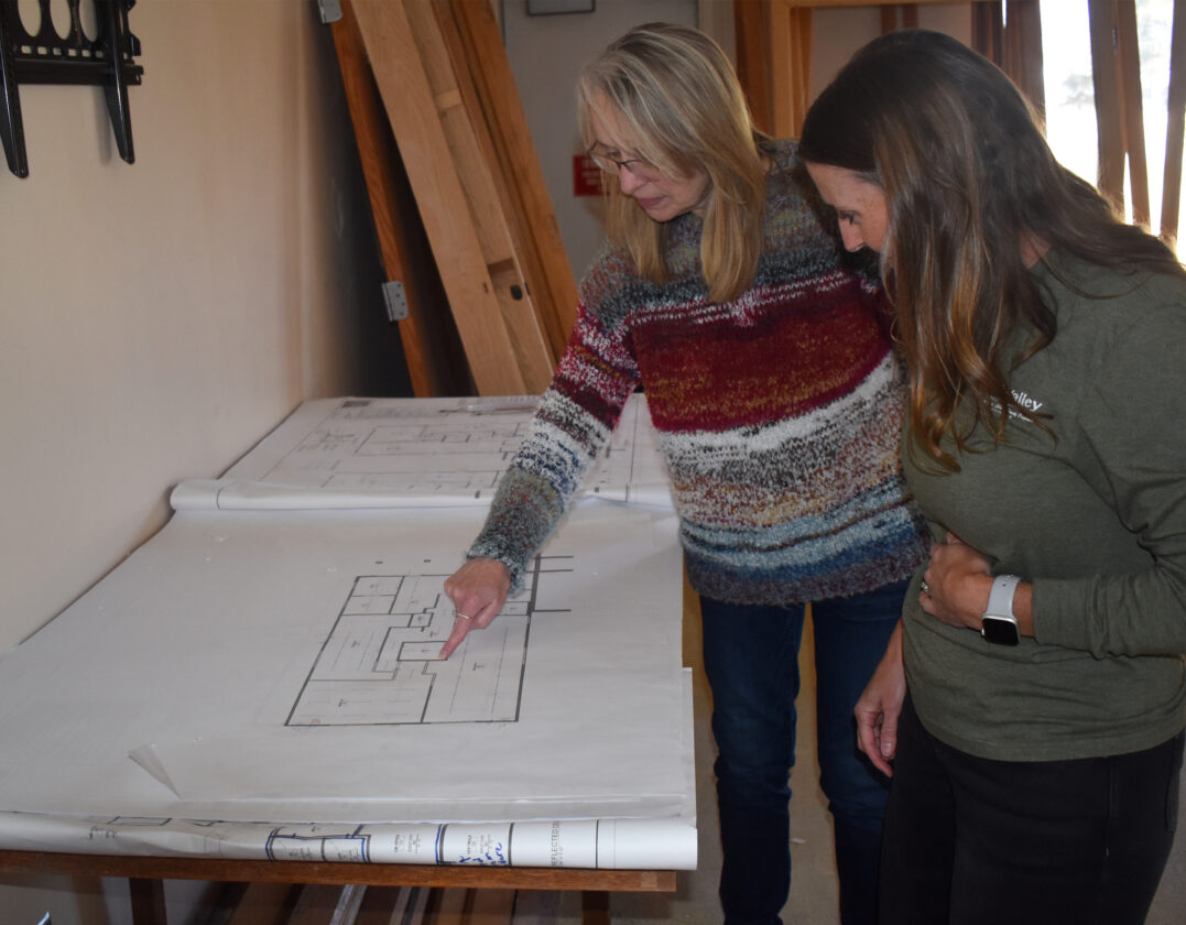 ABOVE: St. Luke’s Administrator Margaret Brandt, left, and Tri-Valley Head Start Manager Lindsay Vokaty look over some blueprints for how the upcoming Head Start Center will be laid out in a wing of the St. Luke’s Lutheran Care Center.