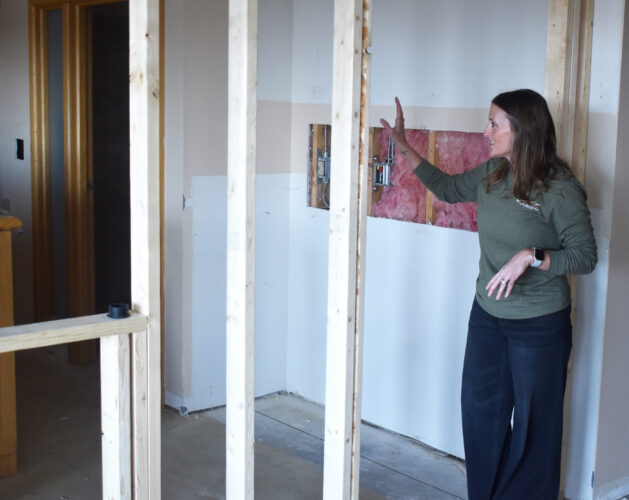 ABOVE: Tri-Valley Head Start Manager Lindsay Vokaty walks through the wing of St. Luke’s Lutheran Care Center under construction for the upcoming Head Start Center, laying out where each classroom, staff area and even an outdoor playground will be.