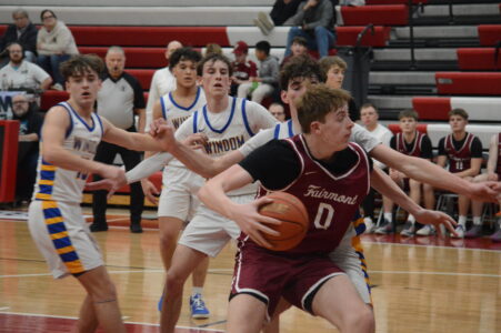 GRANADA — Senior post player Tanner Sinn produced a game-leading 19 points and pulled down a team-best nine rebounds to steer the Class 1A Martin County West Mavericks to a runaway 59-36 victory over the Truman/Martin Luther/ Granada-Huntley-East Chain Jaguars in Valley Conference basketball action Thursday night in Granada.