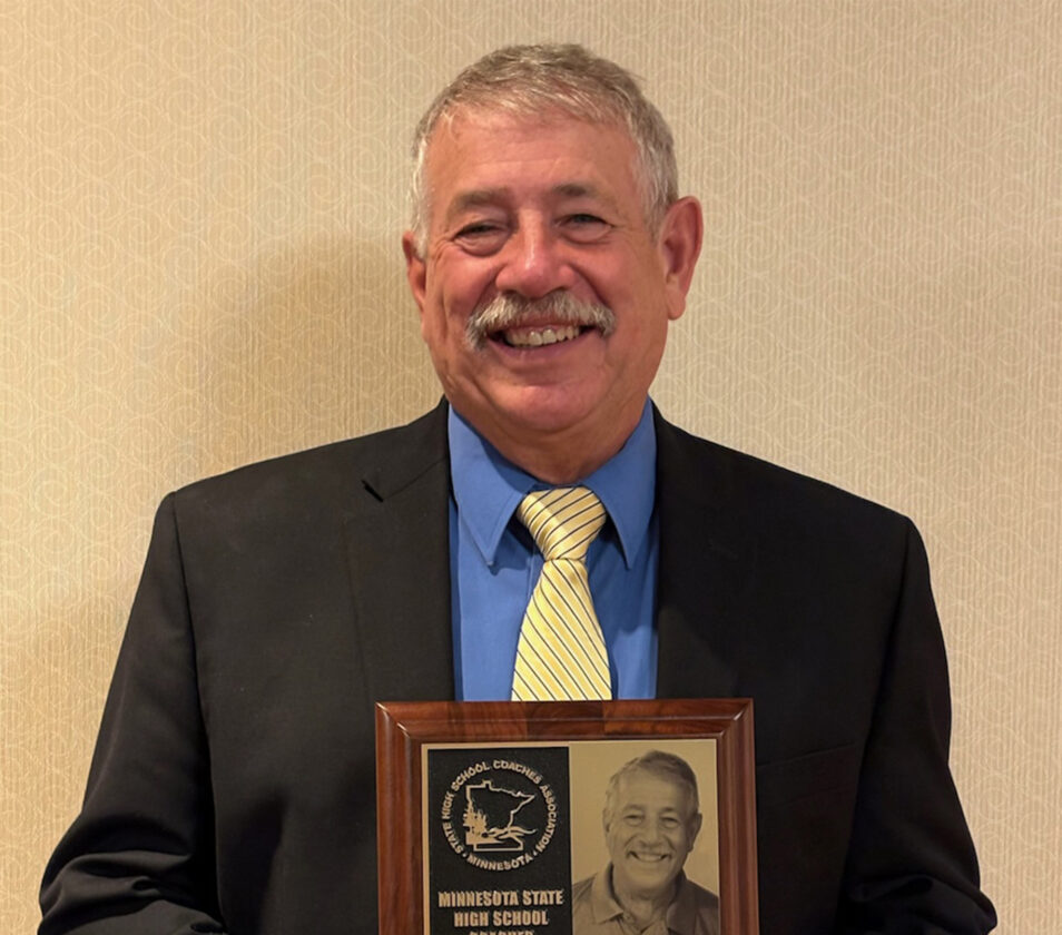 He was inducted into the Class of 2025 Minnesota State High School Coaches Association Hall of Fame on Saturday, Oct 11, in Minnetonka, accepting a plaque for his “Outstanding Achievement, Leadership and Service in the Coaching Profession.”