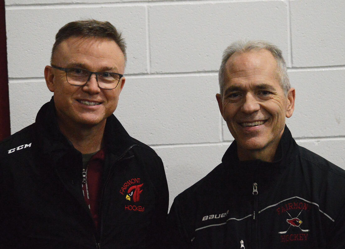 ABOVE: New Fairmont High School boys hockey coaches, Paul Carlson and Aaron Nuss, look to lead the Cardinals to a strong winter season.