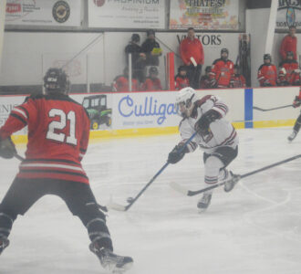 It was Beemer’s time to get in on the action with just over six minutes left before intermission. An Axel Chapman pass set up a breakaway for the Fairmont senior down the right side of the ice. After using some nifty stick work to distract Redwood Valley goalkeeper Brecken Erickson, Beemer touched twine with a strike at the net to give his team the 3-0 cushion heading to break.