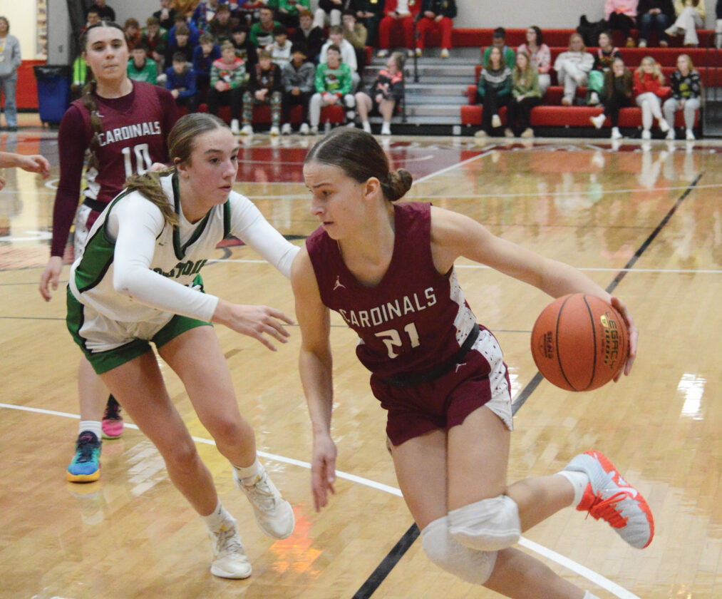 FAIRMONT – Sara Junkermeier needed to change something. The Fairmont girls basketball head coach saw her team’s previous 20-point halftime lead get shaved to four with seven minutes left in regulation. Deciding to give Pipestone Area a different look, her and the coaching staff put the Cardinals into a 2-3 zone defensive scheme to hopefully change the pace of play.