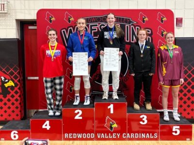REDWOOD FALLS – Martin County Area Red Bull wrestler Kate Kolbe (142 lbs) secured a first-place finish in the Minnesota State High School League (MSHSL) Girls Section 3 tournament this past weekend at the Redwood Valley High School.