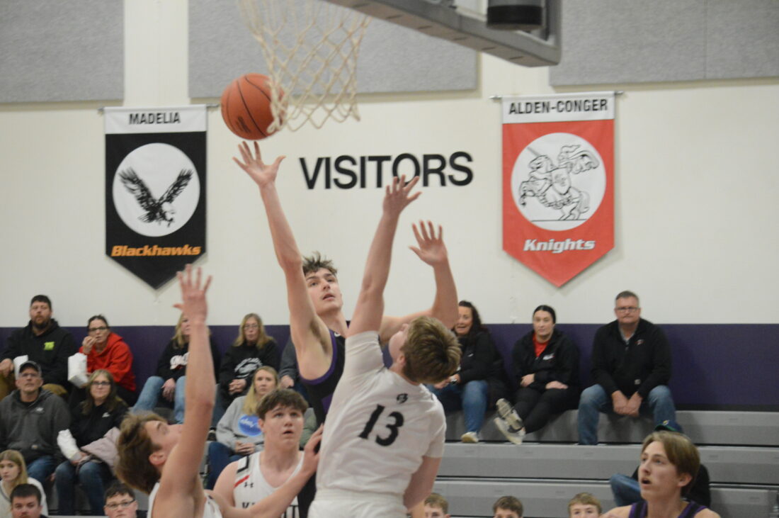 The ball landed into Reagan Emmert’s hands on the wing, who used an extra pass toward the top of the key for a waiting Eli Jensen, who calmly sank the outside shot to end a previous Alden-Conger/Glenville-Emmons five-point run and give his team a 44-37 cushion.