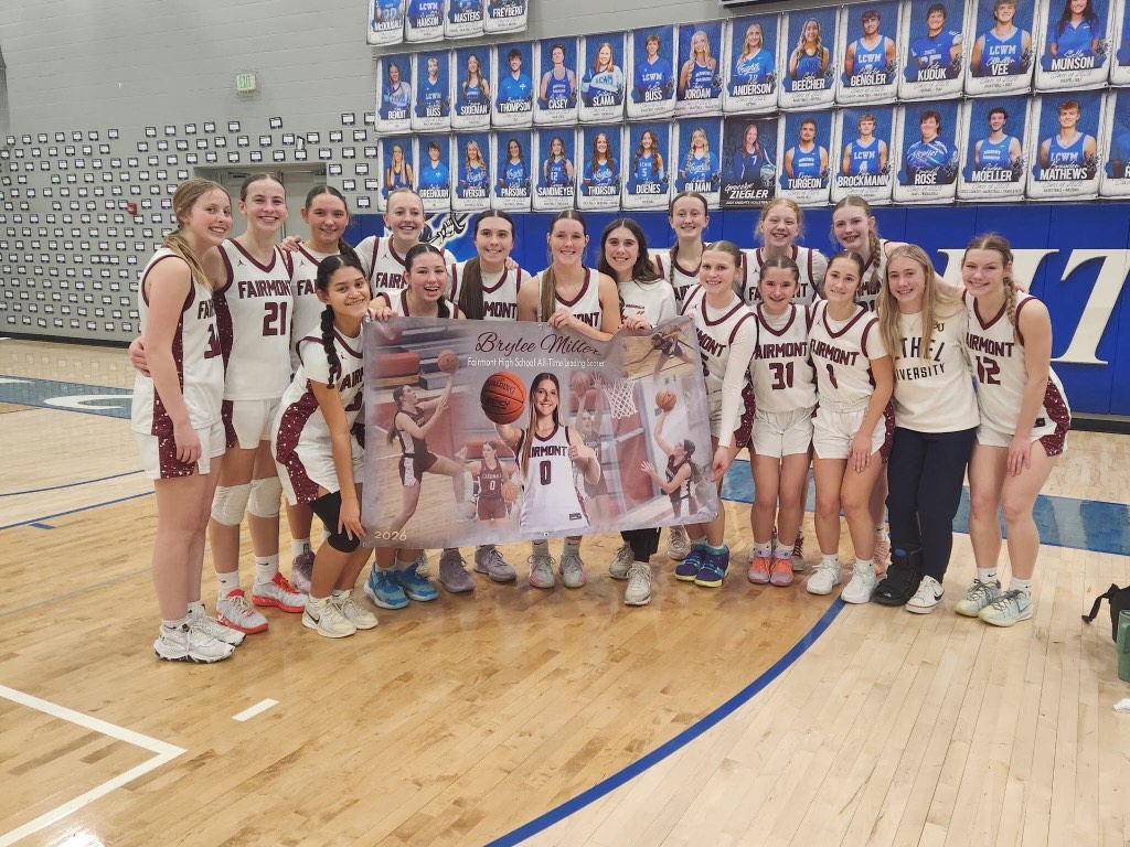 Brylee Miller scored 19 points to place her name as the Fairmont High School girls/boys’ basketball all-time leading scorer. She passed Mitch Pfingsten on the list and now has 2,119 points in her career. Miller also had seven rebounds, four assists, two blocks and one steal.