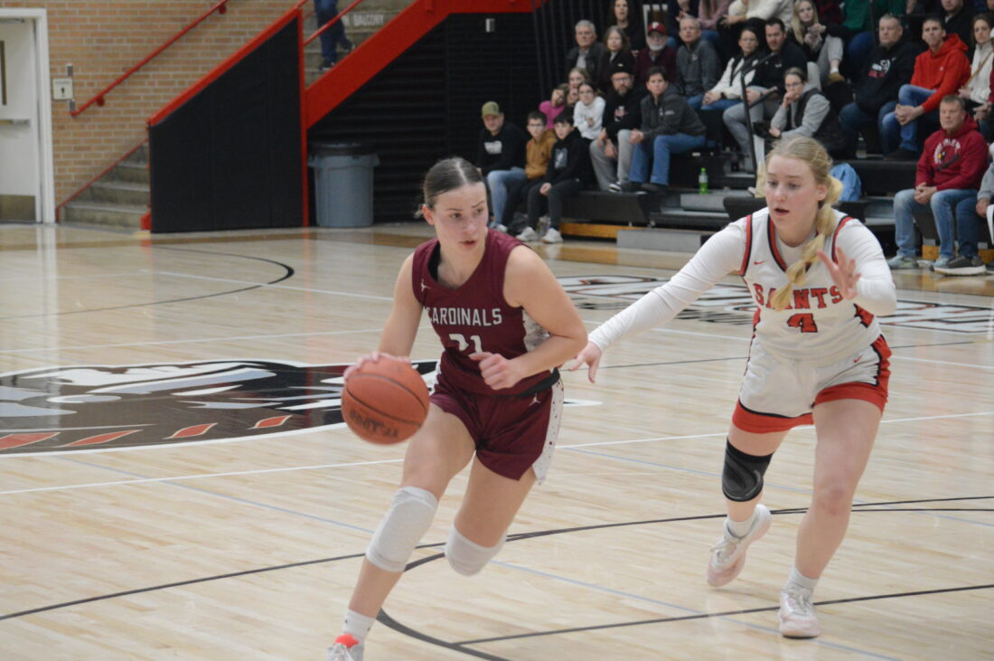 Junkermeier’s timeout at the five-minute mark went beyond settling her team down; it was to change tactics. The Cardinals’ new 2-3 zone caught St. James Area off guard on the offensive end and held them to 10 points for the rest of the half.