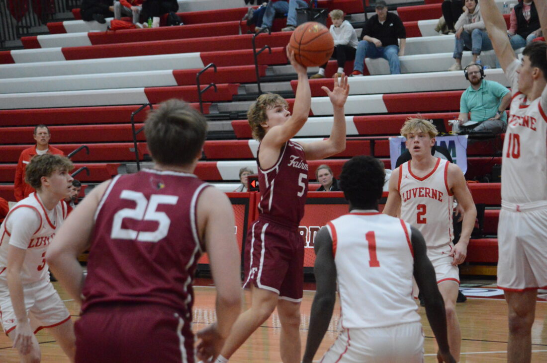 Photo by Jake Olson: Fairmont guard Brayden Williamson (5) looks for his shot during the second half against Luverne on Jan. 13.
