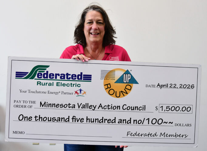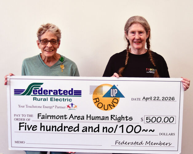 ABOVE: FAIRMONT — The Federated Rural Electric Trust in Jackson recognized local organizations through Operation Round Up. The Minnesota Valley Action Council, represented by Sheila Ous, provides income-eligible energy-assistance funds for Federated members with $1,500.