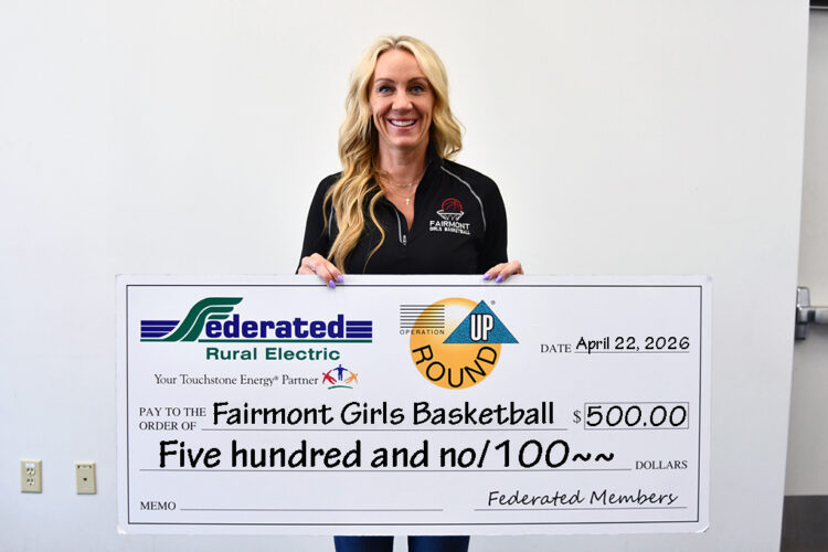 ABOVE: FAIRMONT — The Federated Rural Electric Trust in Jackson recognized local organizations through Operation Round Up. The Fairmont Girls Basketball Association uses $500 toward scholarships for camps and travel teams for those who cannot afford them. Pictured is Angie Toothaker.